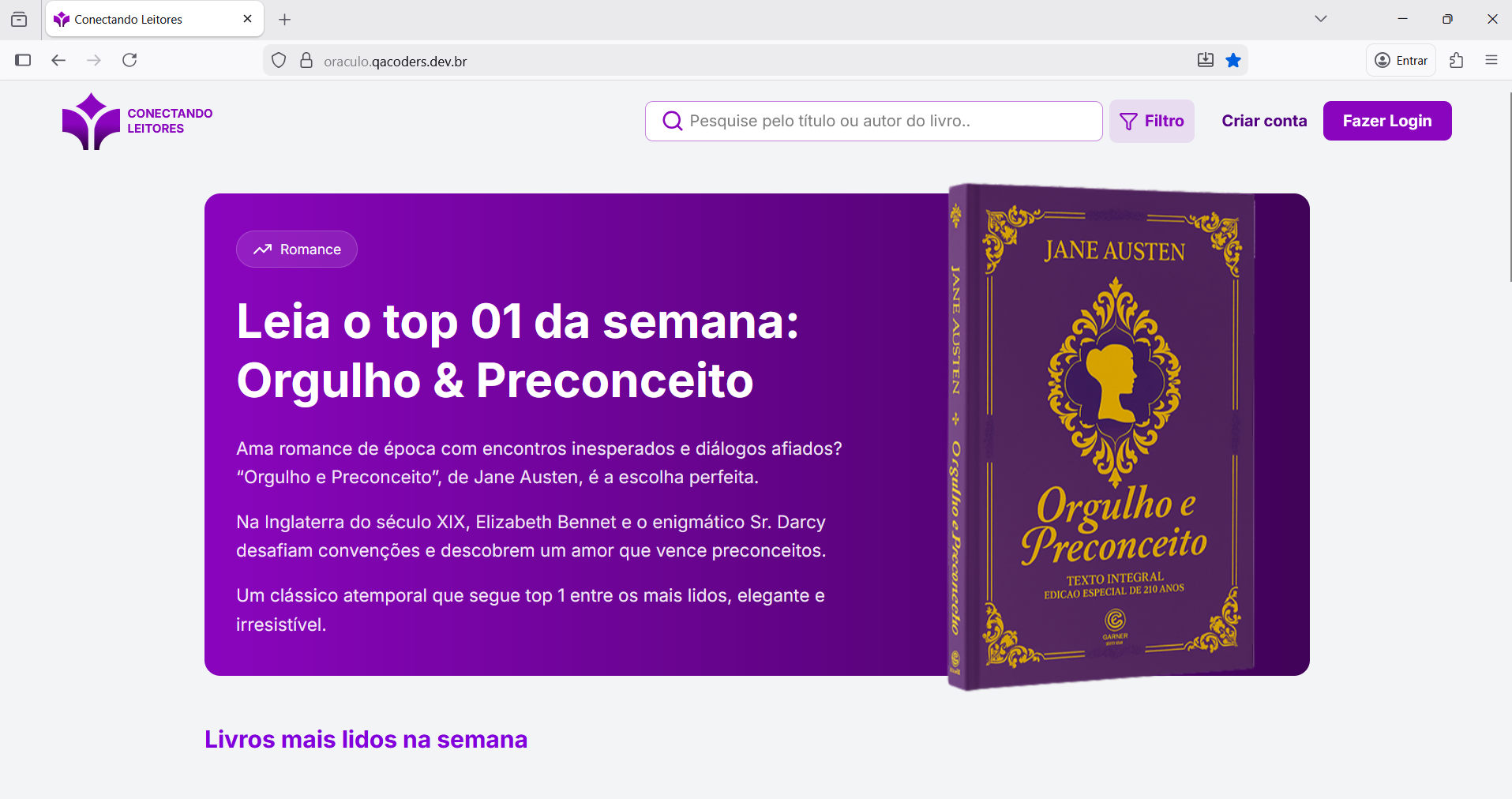Biblioteca online onde usuários podem favoritar, ler e cadastrar obras, enquanto administradores gerenciam a plataforma e o acervo
